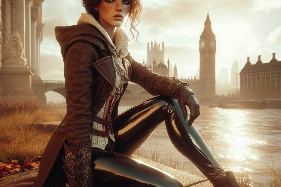 Evie Fry Concept Digital Art: Patent Leggings, Freckles and Assassin’s Creedby dannyleggingAI Generated Art