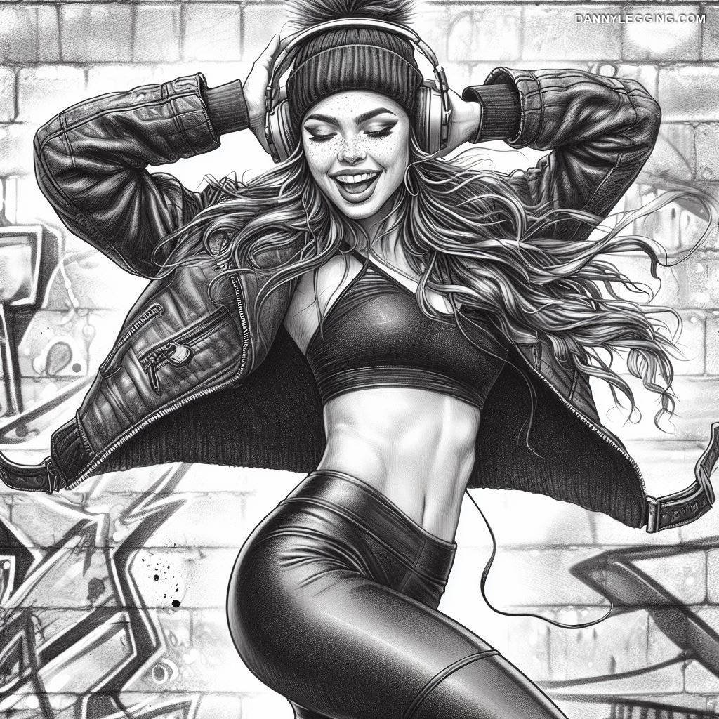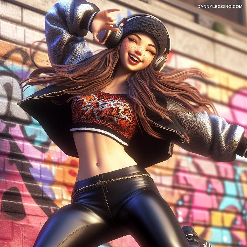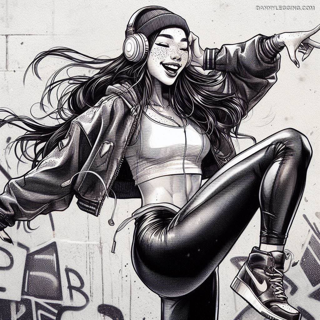 Digital Art of Dancers Listening to Music Wearing Leather Leggings