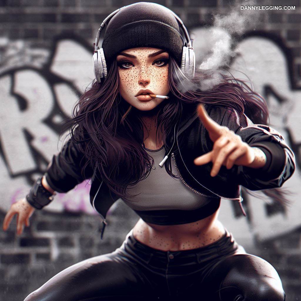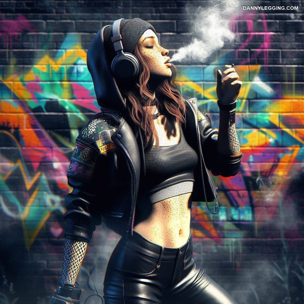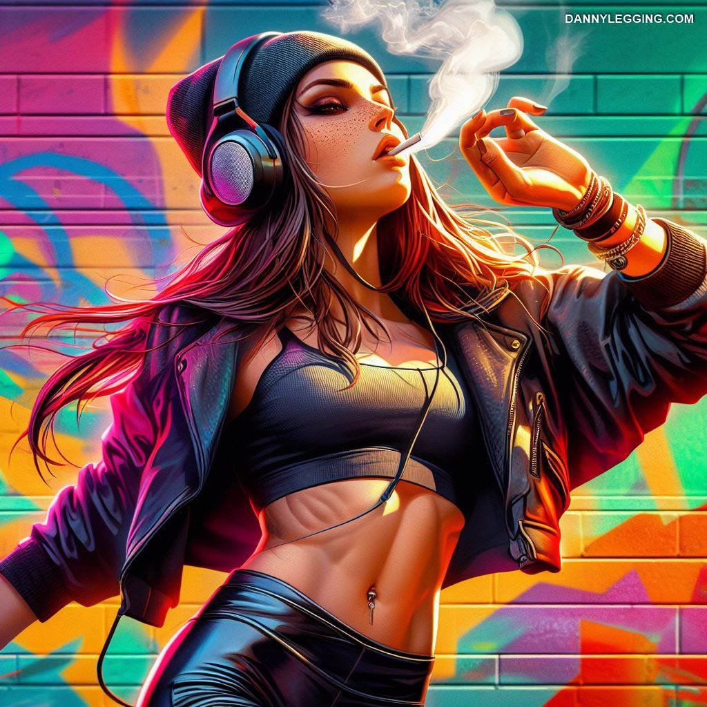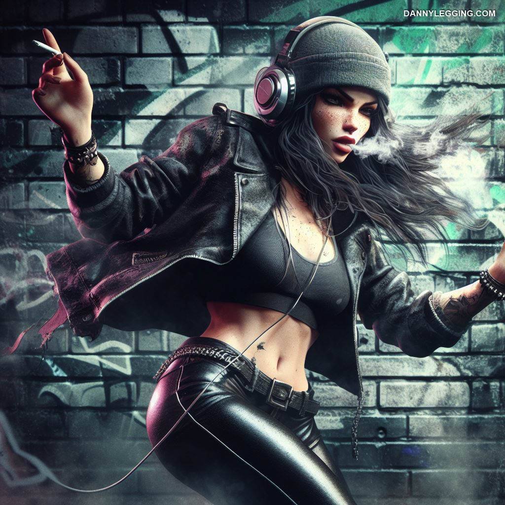 Digital Art of Dancers Listening to Music Wearing Leather Leggings